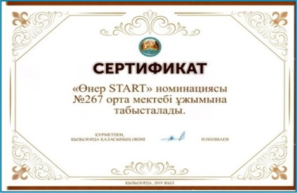 Қала әкімінің “Өнер START” номинациясы иегері №267 орта мектеп ұжымы (2019 жылдың қорытындысы бойынша)
