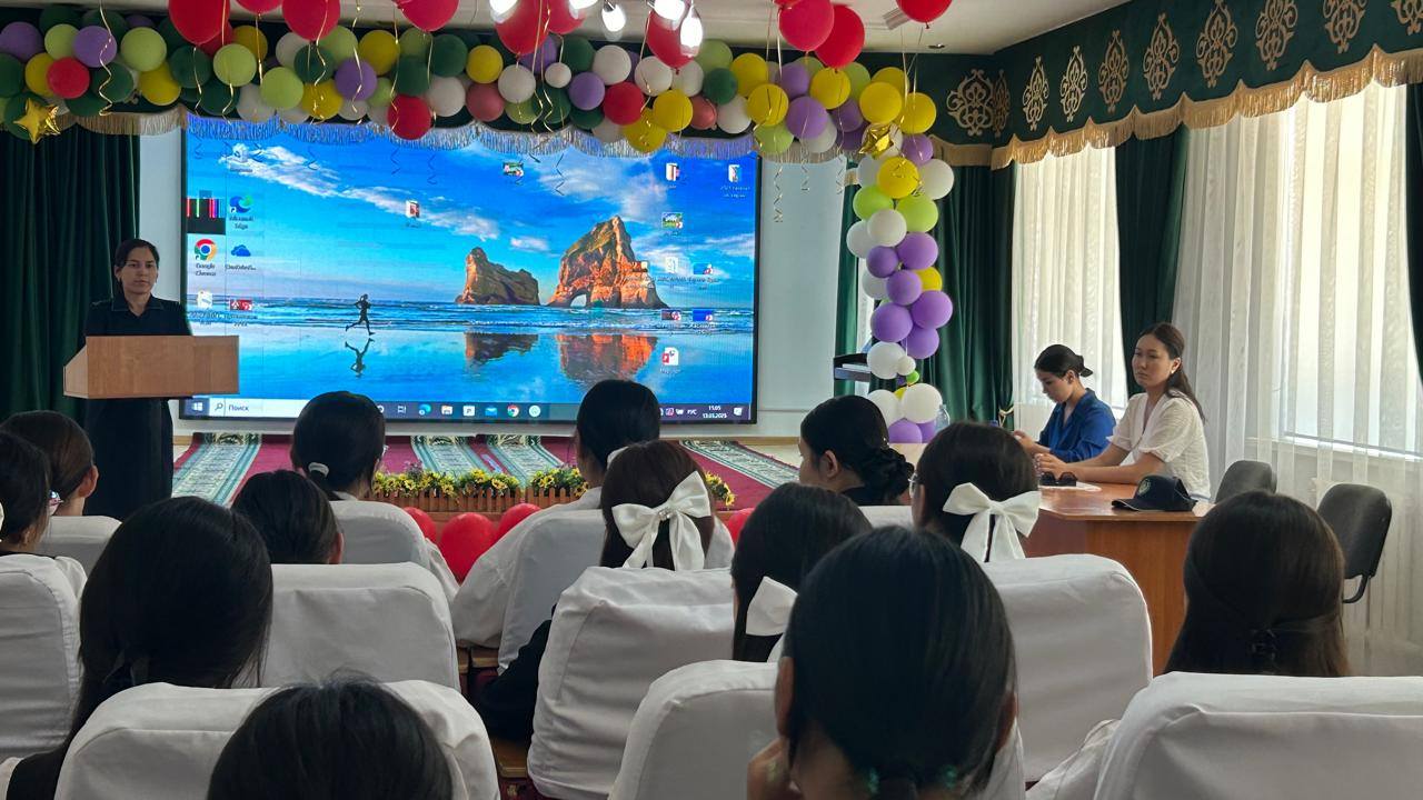 Зорлық-зомбылық пен ерте жүктіліктің алдын алу мақсатында 8-11 сынып қыздарына Қызылорда ҚПБ ЖПҚб отбасылық-тұрмыстық зорлық-зомбылыққа қарсы бөлімшесінің инспекторы полиция капитаны Асанбаева Айгул Жетесқызы мен Қызылорда облыстық жастар денсаулық орталығының психолог маманы Суһрапқызы Тру Аидамен жиын өткізді.